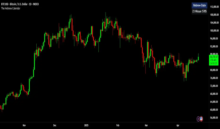 This indicator displays the current Hebrew (Jewish) calendar date based on the real-time Gregorian calendar. Features included: