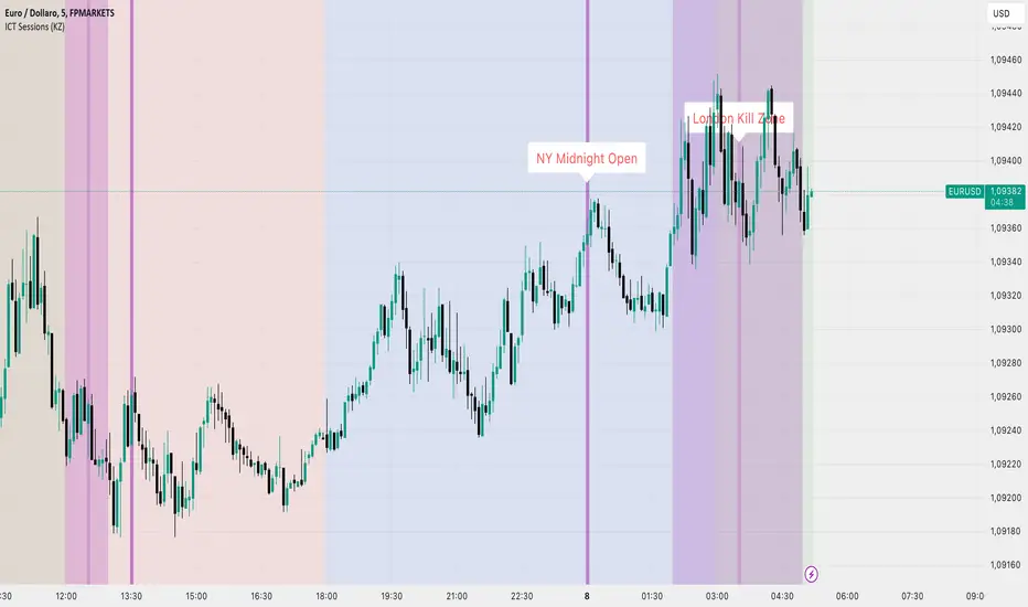 With this indicator you'll see plotted in the charts the London Kill Zone and the New York Kill Zone, you'll see exactly when they start and finish, so you'll be able to understand better the price action and recognize if there are ICT framework to trade. You'll also will see when the New York lunch hour happen (this moment is not favorable for searching frameworks) and you'll see also 2 very important moments of the day, the 8.30 New York Time and the 9.30 New York Time, infact in these 2 particular moments it is most likely that some very profittable framework will appear as there are alway important economic news released in these 2 hours.