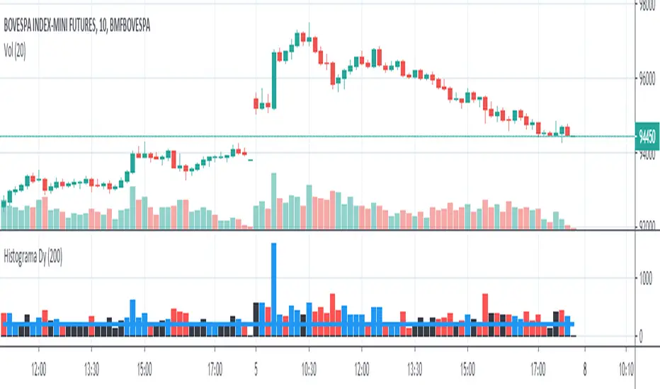 - Blue - If the actual candle absolute value is higher than previous one, and the price is higher than last candle. It would be a long entry.