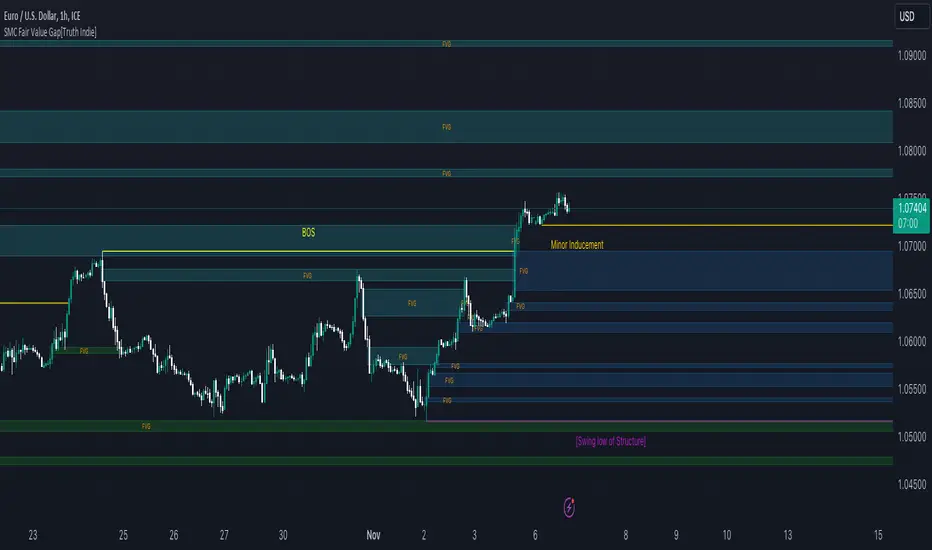 6.When price break the price structure, a High or Low will be formed on one side, and it will lead to an Inducement Swing. When the price moves and collides, it will create a price range of High and Low. You can adjust the method of breaking the structure using the close, high, or low.