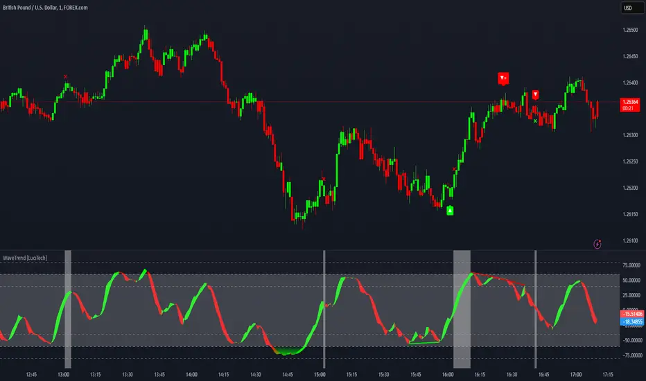 WaveTrend [LuciTech] is a momentum-based oscillator designed to track trend strength, detect divergences, and highlight potential take-profit zones using Bollinger Bands. It provides a clear visualization of market conditions to help traders identify trend shifts and exhaustion points.