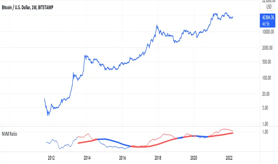Network Value to Metcalfe Ratio (NVM Ratio) is defined as the ratio of the log of market capitalization divided by the log of the square of daily active addresses in the specified window.