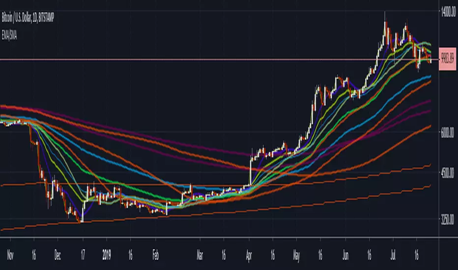 Static EMAs and SMAs are shown on every timeframe. For example, you can set static EMAs or SMAs to show 21 day EMA on 1 hour chart or for example 50 week SMA on 1 day chart, or 200 4 hour EMA on 5 minute chart and so on, possibilities are endless!!! Plus standard 5 EMAs and 5 SMAs (user-defined) are showing for specific chosen timeframe. No need to show them all, just check how many you want.
