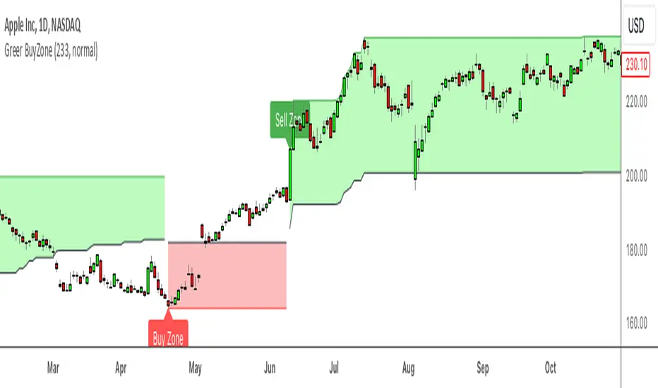 This script is provided for informational purposes only and is not intended as financial advice. The Greer BuyZone Tool is designed to assist in identifying potential long-term investment opportunities and is not suitable for day trading. The use of this tool involves risk, and there is no guarantee of profitability. Users are advised to conduct their own research and consult with a qualified financial advisor before making any investment decisions. The creator of this script assumes no liability for any losses or damages resulting from the use of this indicator.