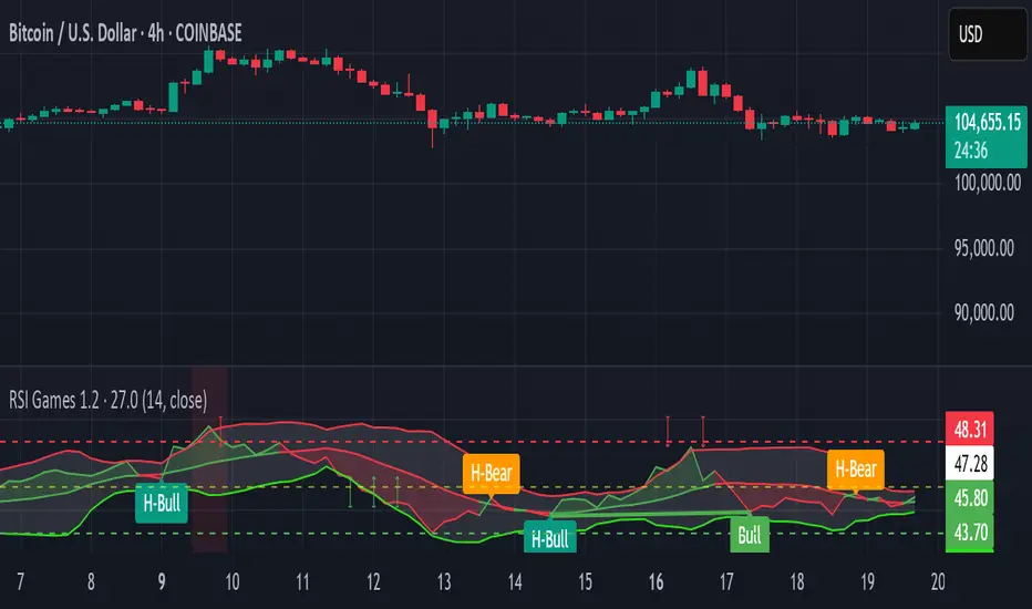 he "RSI Games 1.2" indicator enhances the standard RSI by adding several layers of analysis: