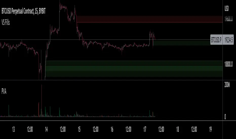 This script identifies candle that have a volume spike and tracks how much price action has retraced to back fill those candles.