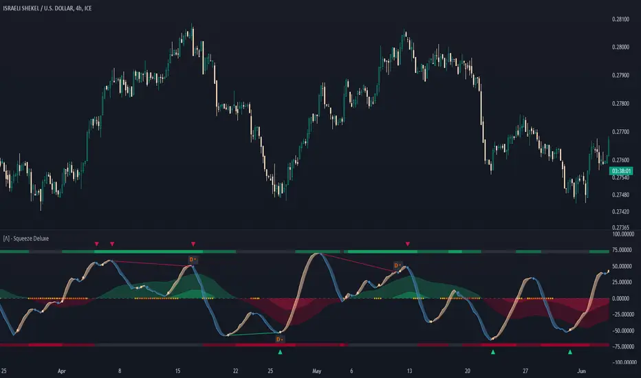 The Squeeze Momentum Deluxe is a comprehensive trading toolkit built with features of momentum, volatility, and price action. This script offers a suite for both mean reversion and trend-following analysis. Developed based on the original TTM Squeeze implementation by LazyBear, this indicator introduces several innovative components to enhance your trading insights.