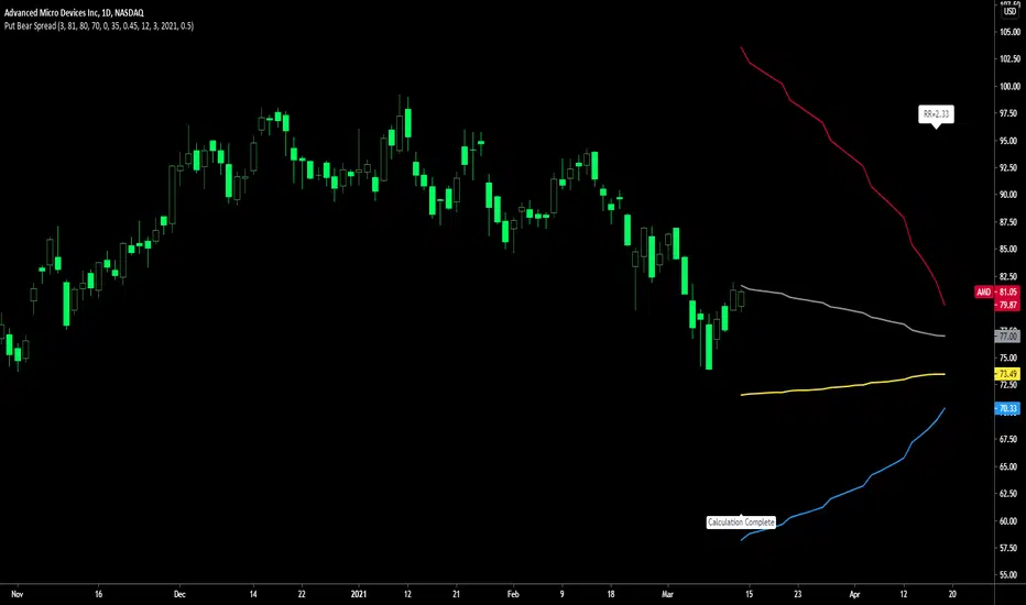 - Put spread price (Debit): The debit paid for one unit of options strategy.