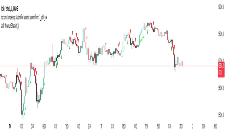 The Candle Momentum Exhaustion indicator is designed to help traders spot potential turning points in a trend by identifying when the prevailing momentum may be “running on empty.” The indicator works by comparing the size of each candle’s body (the absolute difference between the open and close) to the average body size over a recent period. When a candle’s body exceeds a user‐defined multiple of this average, it is flagged as an “exhaustion” candle.