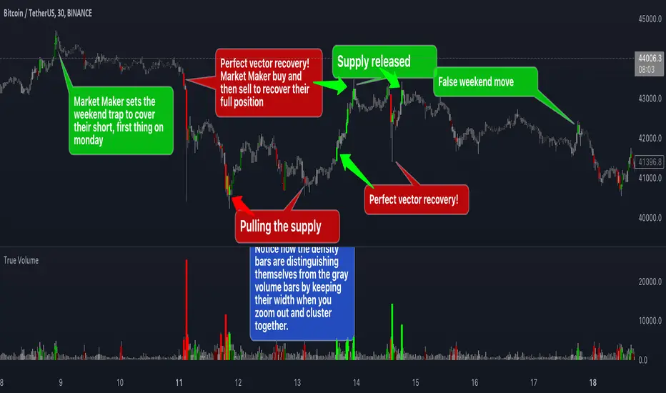 This indicator is designed to provide in-depth analysis of volume data from multiple sources and distinguish highly liquid candles by measuring the density of the volume. By focusing on the density and concentration of volume, rather than just the volume itself, it offers a more nuanced view of the market. This can be particularly beneficial in markets like cryptocurrencies, where understanding the role of market makers versus retail traders is crucial for strategic trading.