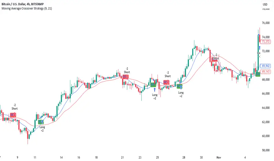 longCondition: A buy signal is generated when the short-term MA crosses above the long-term MA.