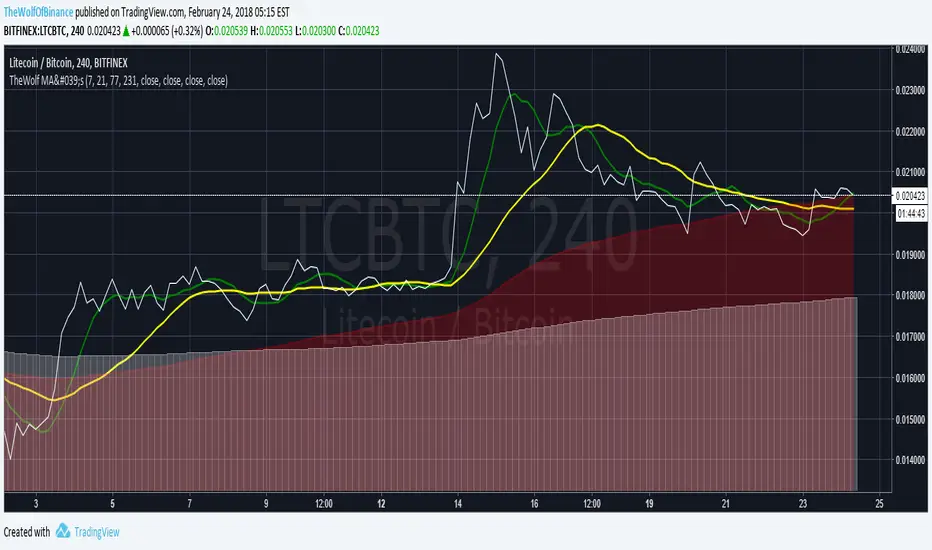 This indicator was made to allow four moving averages to be displayed without needing to use up 3 charting indicators individually