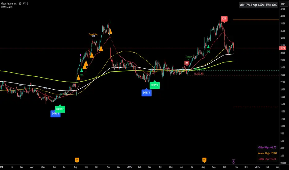 The KIMSHA AIO is a comprehensive overlay indicator designed for swing and position traders. It merges three distinct and powerful trading strategies into a single, cohesive tool to identify high-probability setups in stocks that are in confirmed uptrends.