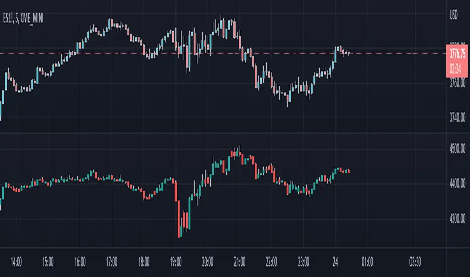 This indicator charts the spread between 2 instruments in a subwindow and it has a multiplier for calculating dollar value or volatility for those 2 instruments,
