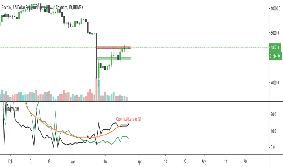 Simple indicator to track case fatality rate and difference in deaths | recovered cases for novel coronavirus. It could help to trace the impact on the stock market and cryptocurrencies.