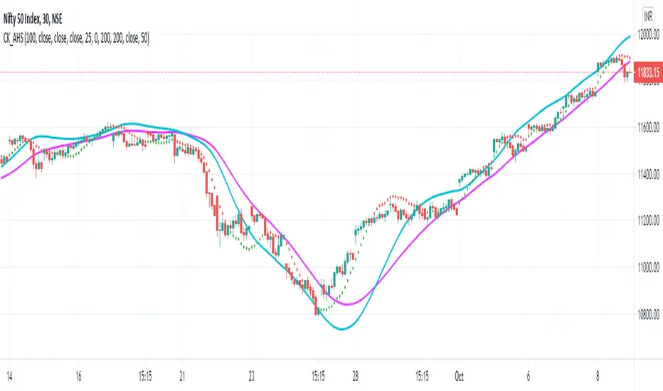 HMA 100 period is used as default. However this can be changed as per wish. Major turning points or decisions can be made using this HMA line. Purple color is used to identify this. This can be used as the final extreme stop for any trend before it turns.