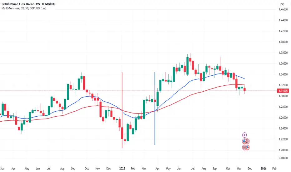 This indicator tracks 20/50 EMA crossovers on GBPUSD (Weekly timeframe) and displays the crossover points across all symbols and timeframes, allowing traders to visually align current price action with key historical turning points in GBPUSD.