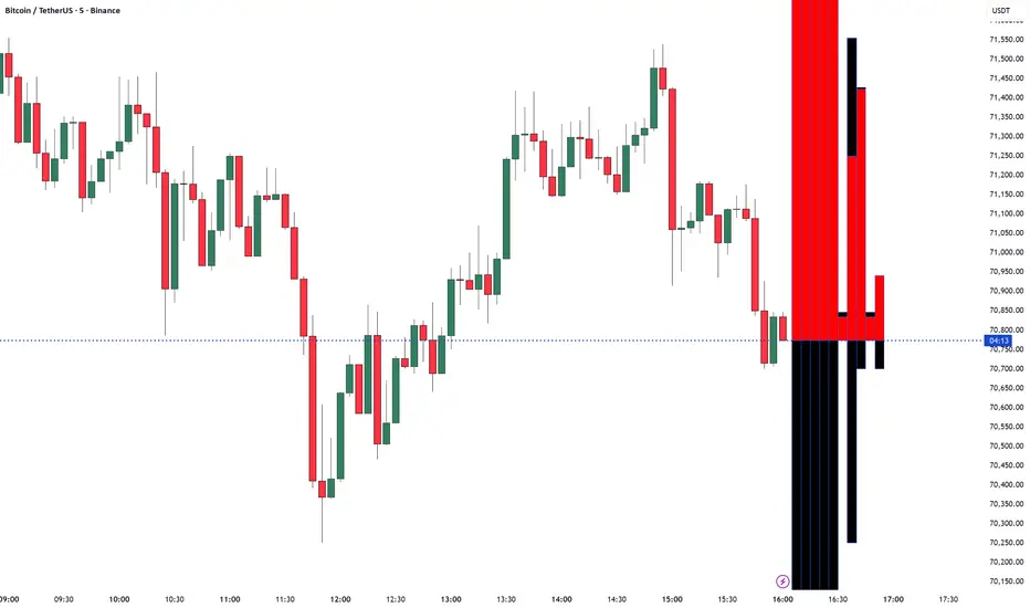 Order Flow Profile is a clean, dynamic tool that visualizes live order flow directly on your chart through a vertical price-level histogram. Unlike lagging indicators or standard volume profiles, this script uses data in real time, showing exactly who's in control—buyers or sellers—at each price zone.