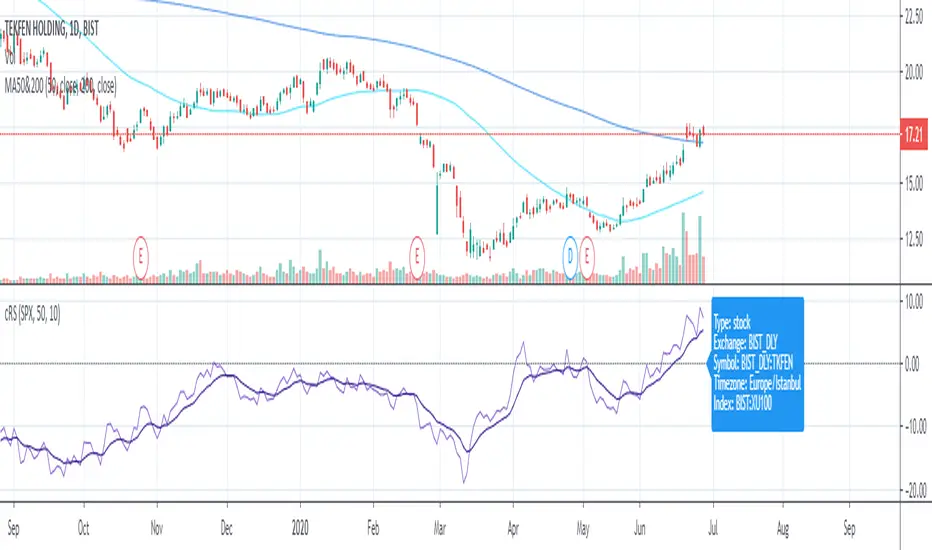 *. Compares strength of a symbol (usually an Asset/equity/stock) to the strength of a comparative symbol (usually an index)