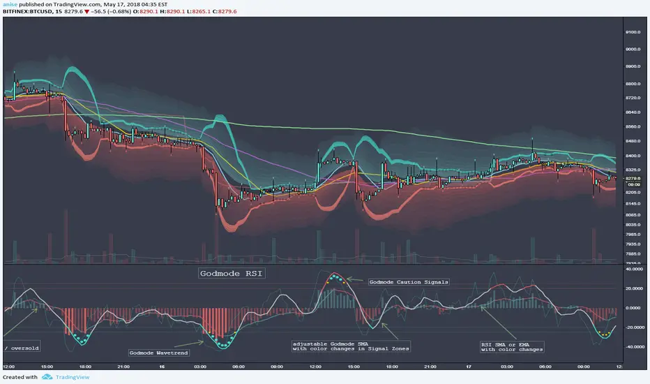 Godmode is basicly the same as the Original one only scaled down a bit with slightly adjusted Caution Signal Zones which i like more. I also added the Option to adjust the Length of the 2nd Wavetrend SMA. Removed the Wavetrend Area because it doesnt have any use for me.
