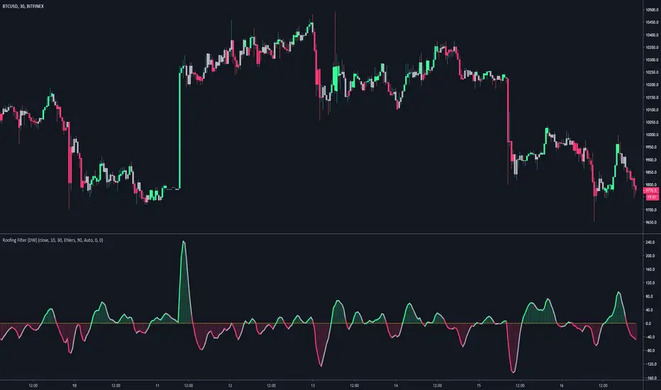 -> Ehlers Roofing Filter, which passes data through a 2 pole high pass filter, then through a Super Smoother filter.