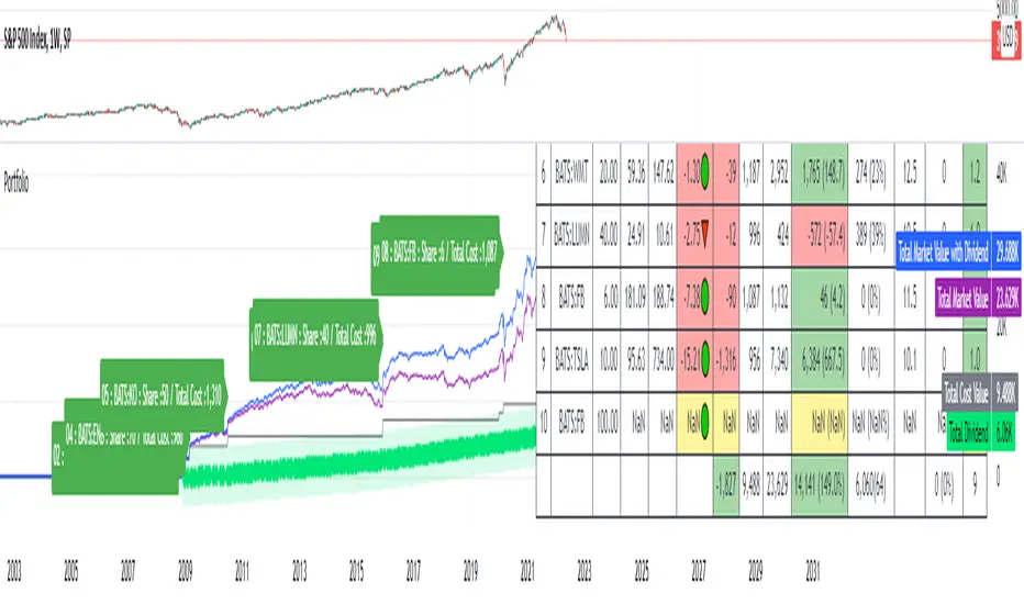 2. The indicator will calculate gain/loss, dividend, % of your portfolio.