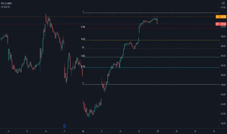 The Litt Auto Fib Tool automatically draws Fibonacci Retracements & Fibonacci Extensions based on time periods. The time period has two important settings.