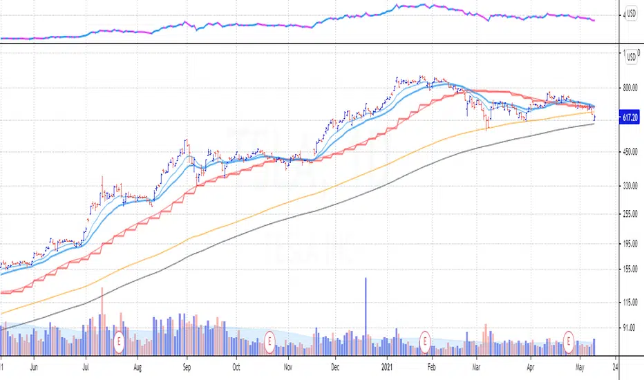 The 150-day, or 30-week like Stan Weinstein uses, is plotted in orange.
