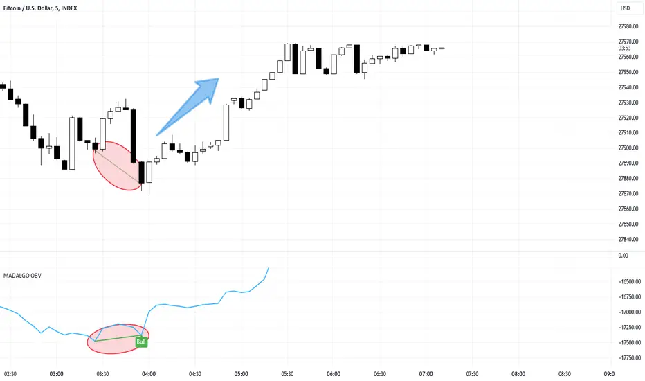 - Regular bullish/bearish divergence in OBV found: Triggered when a regular bullish or bearish divergence is identified.