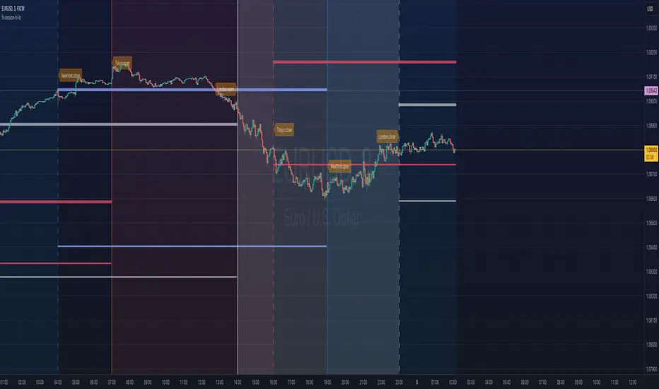- At the end of each session, we begin plotting that (closed) session's high and low, which acts as a natural support and resistance for the Forex market. This is the key feature it provides. The first feature is mainly there for a visual guide, which can be turned off via the UI settings, but it certainly helps verifying the logic!