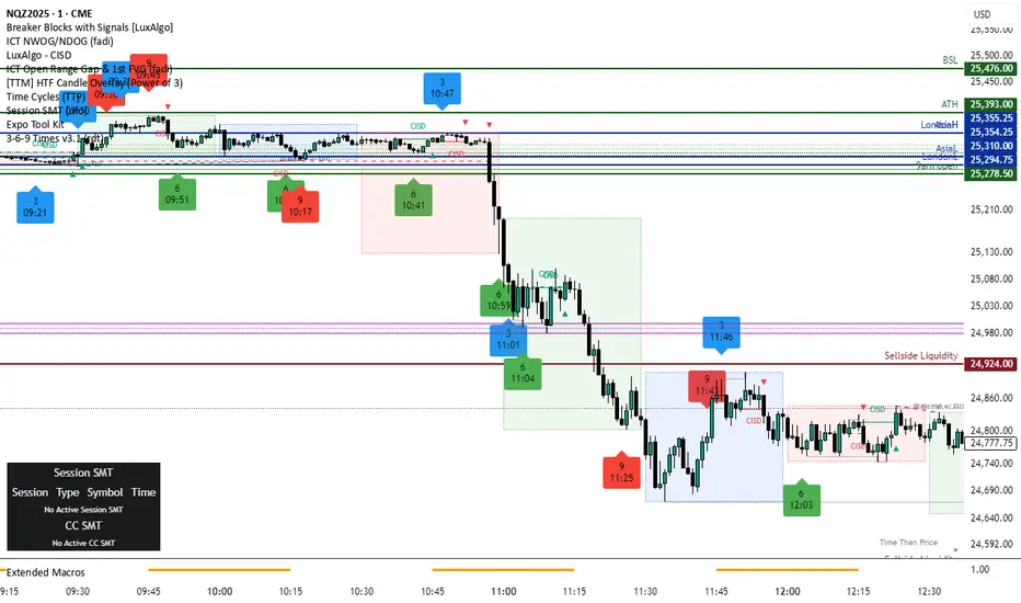 This indicator identifies specific times/dates where the digital root (sum of digits reduced to a single number) equals 3, 6, or 9, which are considered significant in numerology and certain trading methodologies.