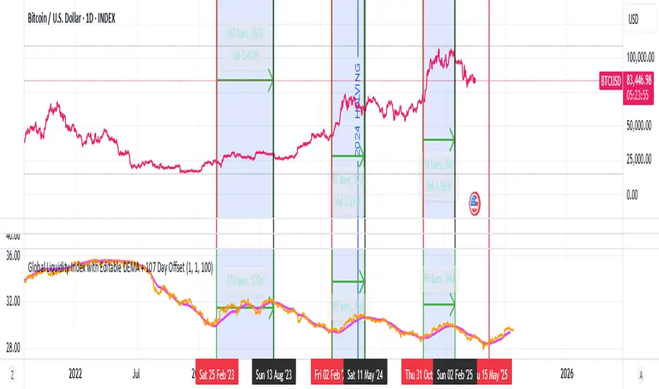Global Liquidity Index with Editable DEMA + 107 Day Offset