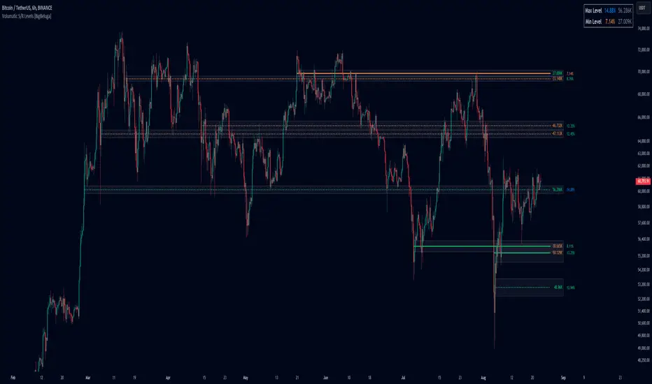 The Volumatic S/R Levels [BigBeluga] is an advanced technical analysis tool designed to identify and visualize significant support and resistance levels based on volume and price action.