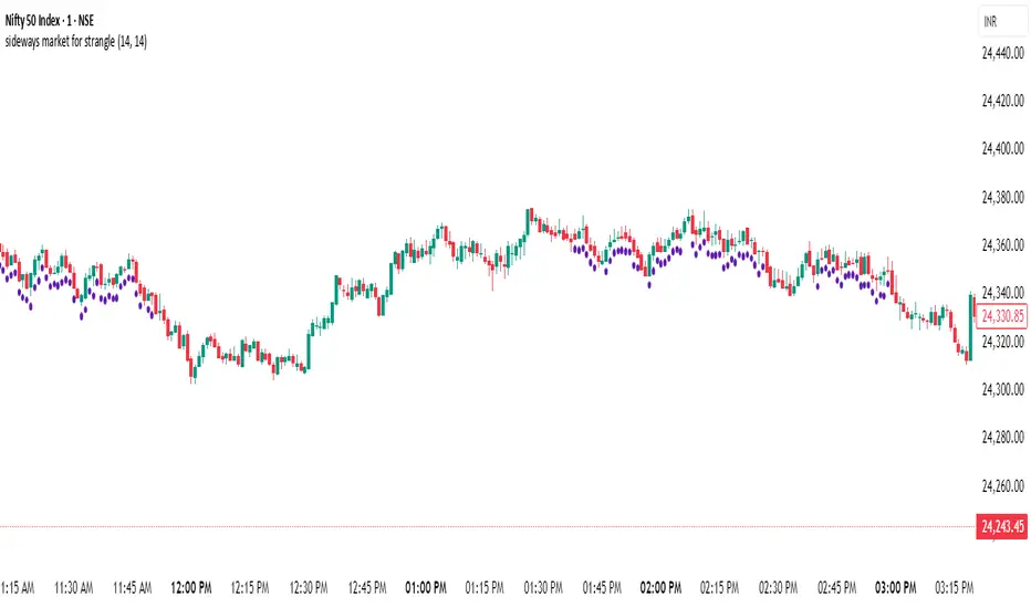 This Pine Script is designed to identify **sideways or range-bound markets**, which are often ideal conditions for trading **options strangle strategies**. Here's a breakdown of what the script does: