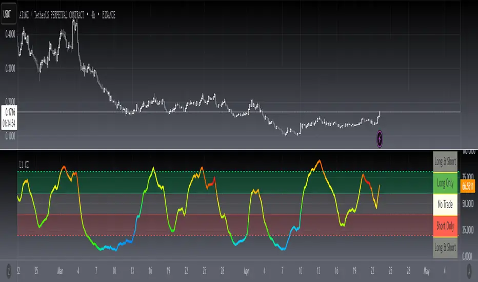 OVERVIEWThe [blackcat] L1 Chop Zones indicator helps traders identify market conditions by highlighting areas of consolidation or "chopping" around key price levels. This script uses a combination of weighted moving averages, risk assessment calculations, and customizable thresholds to create visual zones that indicate whether the market is suitable for long, short, or no trades 📉↗️.