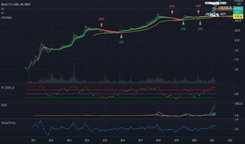 A simple script to visualize price extension. Useful to gauge tops/oversold areas. Most useful when used on weekly tf.