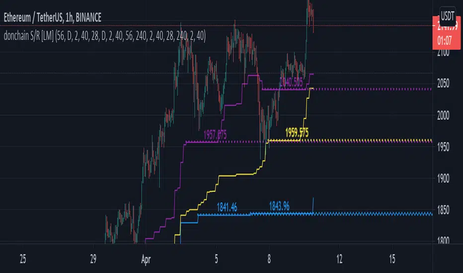 I would like to introduce you donchain support&resistance levels. The idea is to look for important levels that are identified by donchain line, where donchain usualy spents a lot of time without any move usualy turns out to be good level for bounces.