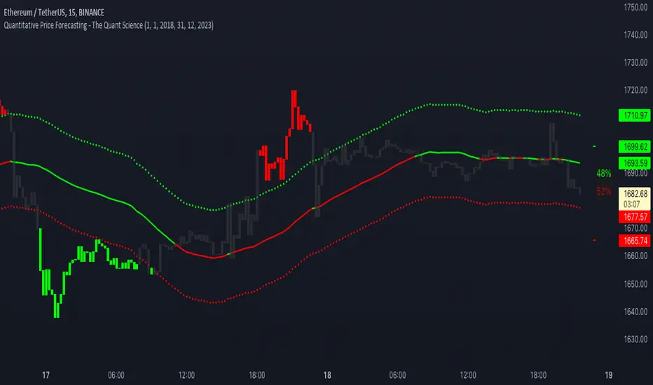 This script is a quantitative price forecasting indicator that forecasts price changes for a given asset.