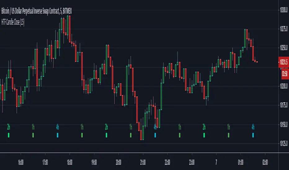 This draws a label to alert user when a higher timeframe candle closes on a intraday chart.