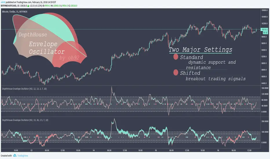 DepthHouse Envelope Oscillator is designed to show dynamic support and resistance, along with possible over extension.