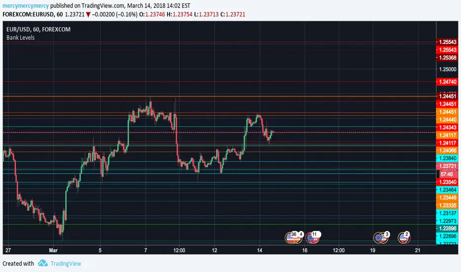 If you trade Forex this is the indicator you need above all. Most recent six highs and lows on the daily, weekly, and monthly (includes current day). Support and resistance isn't quite what it is...until when that's exactly how it often plays out on the lines. They are called bank levels for a reason. *Not every line will support or resist of course*