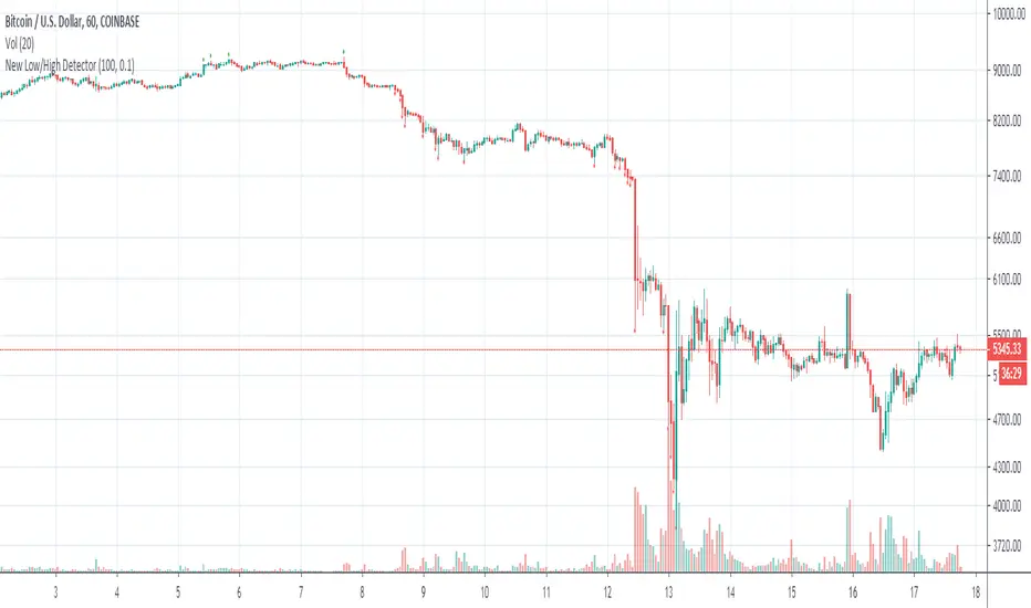 Demonstrates the detection of new lows/highs within an amount of bars (when above an amplitude threshold)