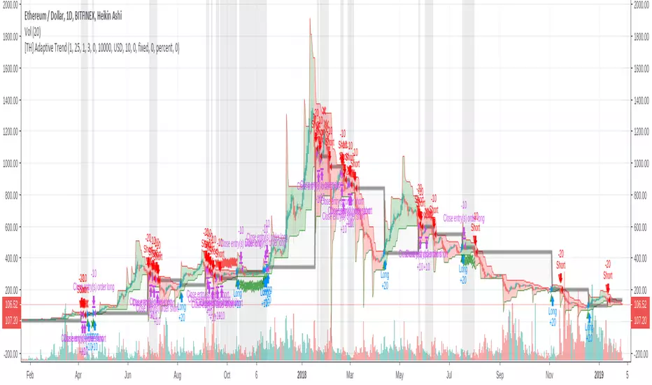 1. It is set to open price of actual position entry ( heikin ashi chart's open price = loss cut line = (open + close)/2 )