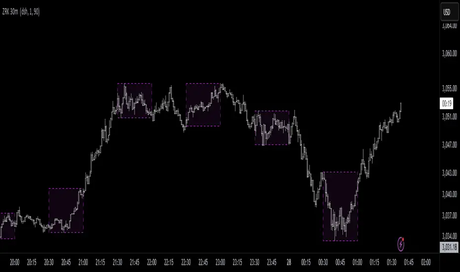 This TradingView indicator draws alternating 30-minute boxes aligned precisely to real clock times (e.g., 10:00, 10:30, 11:00), helping traders visually segment intraday price action. It highlights every other 30-minute block with customizable colors, line styles, and opacity, allowing users to clearly differentiate between trading intervals. The boxes automatically adjust based on the chart’s timeframe, maintaining accuracy on 1-minute to 60-minute charts. Optional time labels can also be displayed for additional context. This tool is useful for identifying patterns, measuring volatility, or applying breakout strategies based on defined, consistent time windows across global trading sessions.