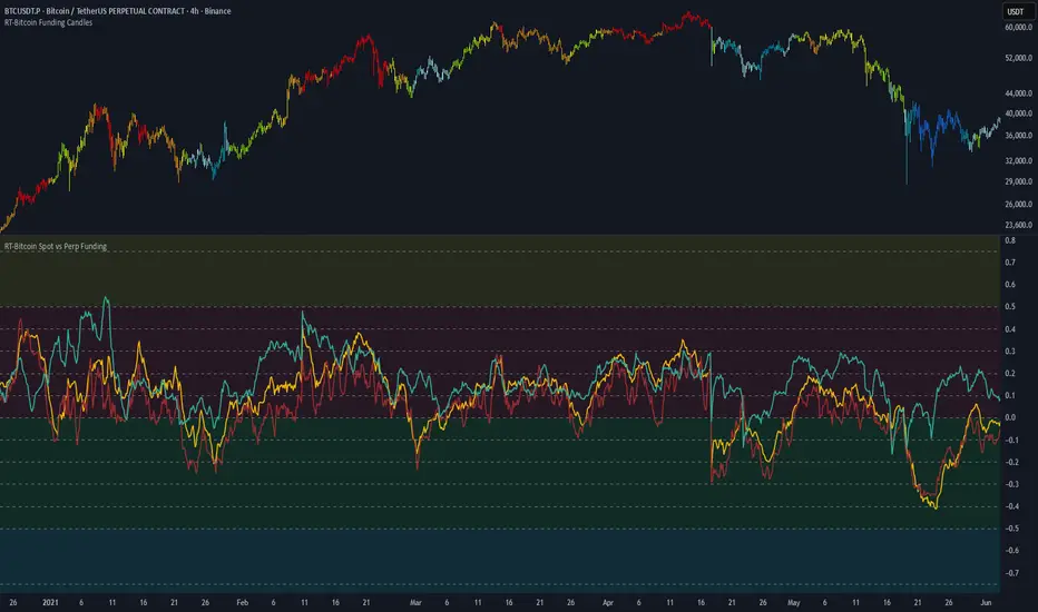 The RT-Bitcoin Funding Candles and the RT-Bitcoin Spot vs Perp Funding indicators use chart-based calculations and publicly available pricing to approximate funding behavior. They do not access private exchange order books or actual liquidation feeds, do not reveal real trader positions, and cannot guarantee that any specific funding condition will lead to a particular price move.