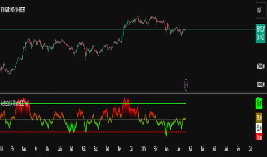 The Aesthetic RSI [TheAlchimist] is a visually stunning and mathematically refined take on the classic Relative Strength Index. With customizable settings, advanced smoothing, and eight unique visual palettes, it empowers traders to detect momentum shifts and divergences with unparalleled clarity.
