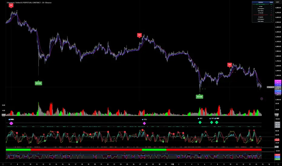 Open Interest, CVD, Volume Delta 등을 활용해서 장기적 반전 구간을 측정하는 시그널 지표입니다.