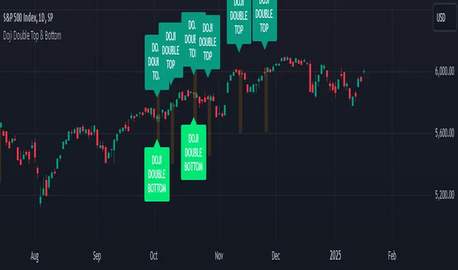 This indicator checks if 2 consecutive candlesticks are formed in such a way that both the lows or both the highs of the consecutive candlesticks are almost at the same level and either of them is a doji - TIMEFRAMES :