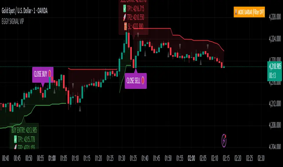 EGGY SIGNAL is a custom trading system designed to eliminate market noise and provide clean, high-probability entry signals. Unlike standard indicators that often give conflicting information, this script uses a Triple Confirmation Algorithm that works in the background.