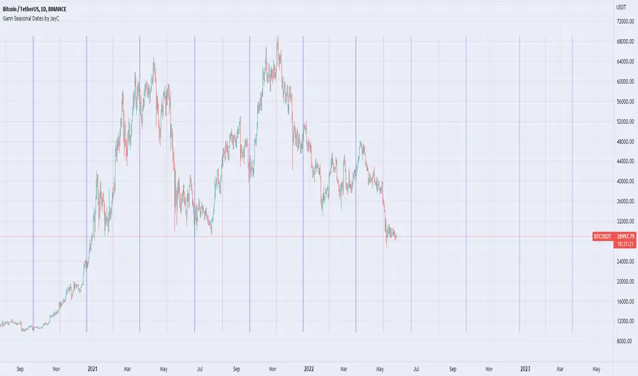 This script marks important seasonal dates with a vertical line that Gann used to watch for Trend changes.